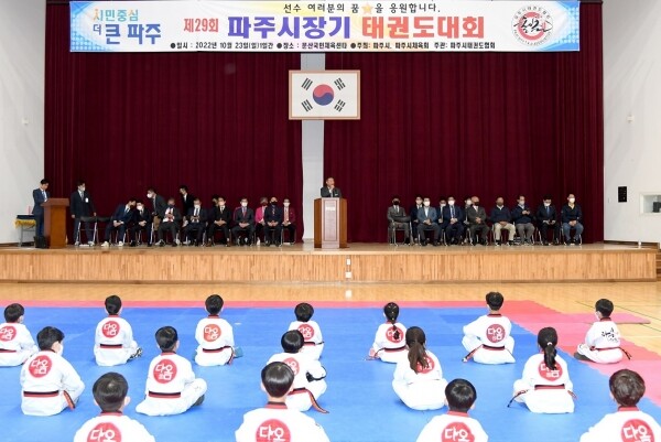 파주시 태권도협회 주관으로 진행된 이날 대회에는 김경일 파주시장을 비롯해 박정 국회의원, 이성철 파주시의회 의장, 선수 및 관계자 등 700여명이 참석했다.