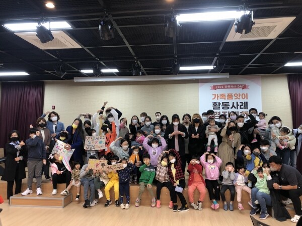 가족품앗이는 공동육아나눔터에서 저학년 이하 학생들을 대상으로 부모가 주체가 되어 이웃간 돌봄 품앗이하는 활동 프로그램으로 이번 경진대회에서는 가족들의 공동육아 사례를 공유하며 우수품앗이에 대한 시상작을 선정하는 등 가족들 간 친밀감을 높이고 육아공동체 인식을 확대하는 시간이 됐다.