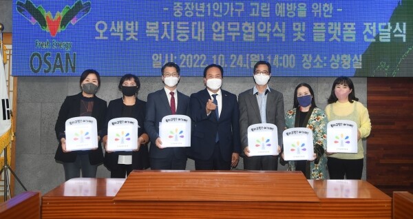 이권재 오산시장은 “이번 협약을 통해, 우울 및 고립감이 높은 중장년들에게 실질적으로 도움이 되는 복지서비스를 제공에 최선을 다하겠다”며 “앞으로 오색빛 복지등대 플랫폼 설치를 통한 위기가구 발굴 인적 안전망을 지속적으로 확대해, 복지 사각지대에 있는 취약계층 발굴에 최선을 다하겠다”고 밝혔다.