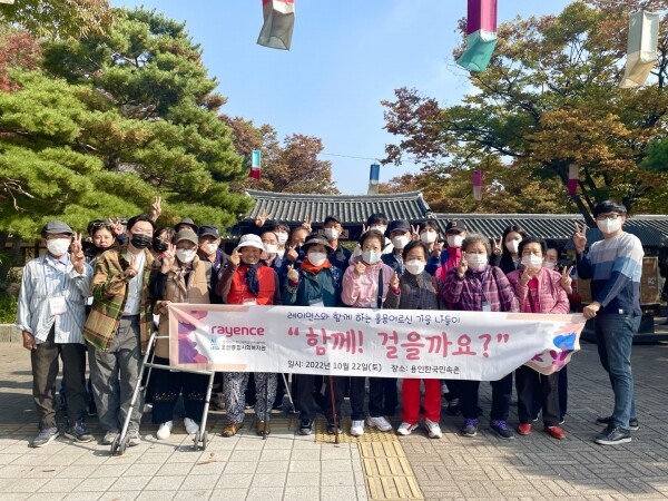 ‘함께 걸을까요’란 주제로 진행한 이날 나들이는 평소 외부 활동을 즐기기 어려운 20여명의 어르신이 참여한 가운데 레이언스를 비롯한 총 10명의 자원봉사자와 직원들도 동참했다.