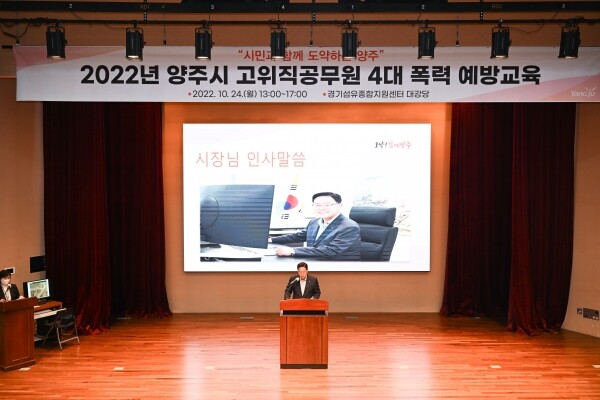한편 양주시는 지난 13일부터 14일까지 6급 이하 전 직원을 대상으로 4대 폭력 온라인 영상회의를 통한 비대면 교육을 실시하는 등 4대 폭력 예방과 근절을 위한 올바른 조직문화 조성을 위해 노력해오고 있다.