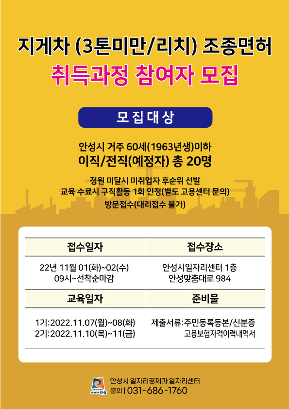 김보라 안성시장은 “물류업종이 많은 우리시 지역 특성상, 맞춤형 지게차 교육이 구인·구직 갈증을 해소하는 데 큰 도움이 될 것”이라고 말했다.
