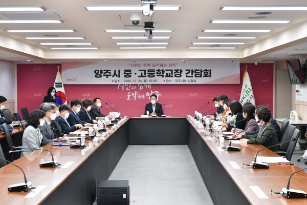 미래 선도의 교육도시 실현을 위한 이번 간담회는 2023년 양주시 교육지원사업 지원 방향에 대한 설명, 공교육 내실화를 위한 교육 발전방안에 대한 토론, 건의사항 청취 등으로 진행됐다.