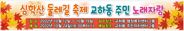 교하동 주민자치위원회의 주최·주관으로 개최되는 심학산 둘레길 축제는 심학산 등산로를 활용한 자연친화 나들이 활동으로 코로나19로 취소됐다가 3년 만에 재개됐다.