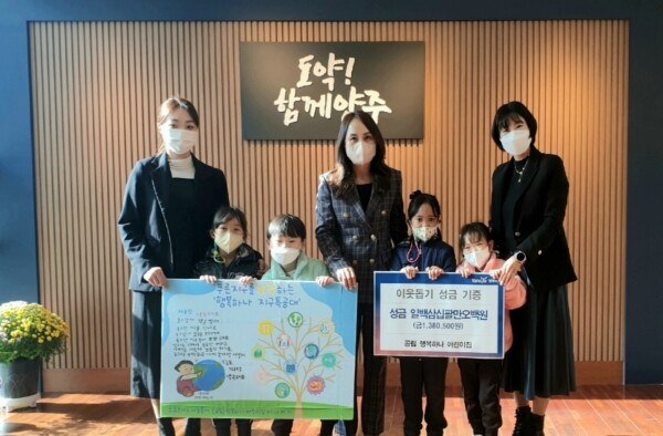 송미애 양주2동장은 “어른도 실천하기 어려운 환경 보호를 유치원생들이 실천해 이웃을 위해 온정의 손길을 보태준 행복하나 어린이집의 모든 분에게 감사의 마음을 전한다”며 “양주2동 곳곳에 도움의 손길이 닿을 수 있도록 최선을 다하겠다”고 말했다.