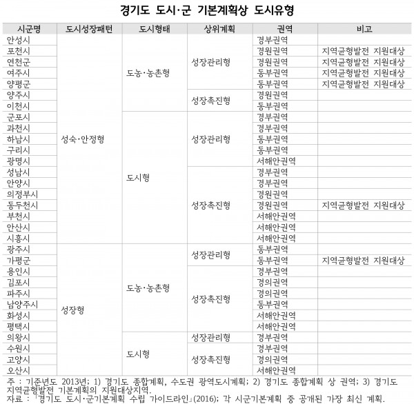 연구원은 연령대별 인구 비율과 연령대별 인구증감률 등을 사용해 인구구조 변화 유형을 분석했으며 2020년의 경기도 인구구조 유형을 대도시형 생산인구중심형 전연령성장형 중소도시생산감소형 고령화심각형의 5가지로 분류했다.