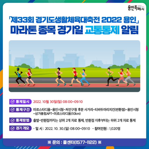 제33회 경기도생활체육대축전 2022 용인 단축마라톤 경기의 원활한 진행을 위해서다.