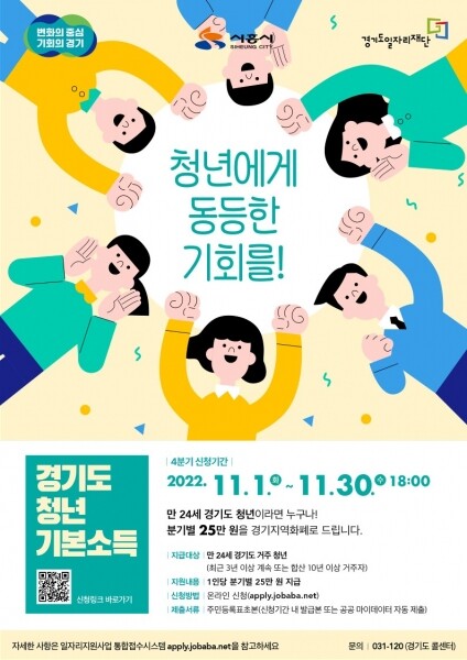 4분기 신청 대상은 경기도에 최근 3년 이상 연속 거주하거나 거주한 일수의 합이 10년 이상인 자로 1997년 10월 2일부터 1998년 10월 1일 사이에 출생한 만 24세의 시흥시 청년이 해당된다.