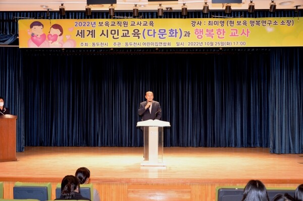 동두천시 사회복지기금 지원사업으로 추진된 이번 교육은 ‘세계 시민교육과 행복한 교사’라는 주제로 다문화 인식개선 및 상호문화 이해 교육을 통해 보육교사들이 다문화 가정의 아동들을 편견 없이 열린 마음으로 보육할 수 있도록 하는데 초점을 맞춰 진행했다.