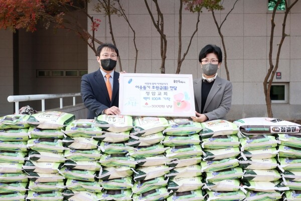 이날 기탁한 백미는 교회 신도들이 십시일반 모은 성금으로 마련한 것이다.