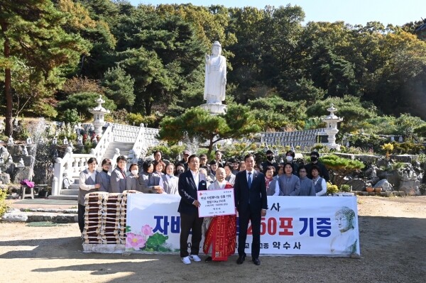 주지 법련스님은 “2016년 아미타대불 점안식부터 매년 꾸준히 기증하고 있다”며 “힘든 시기에 더 어려운 분들을 위해 자비나눔에 십시일반으로 동참해주신 신도분들에게 감사드린다”고 말했다.