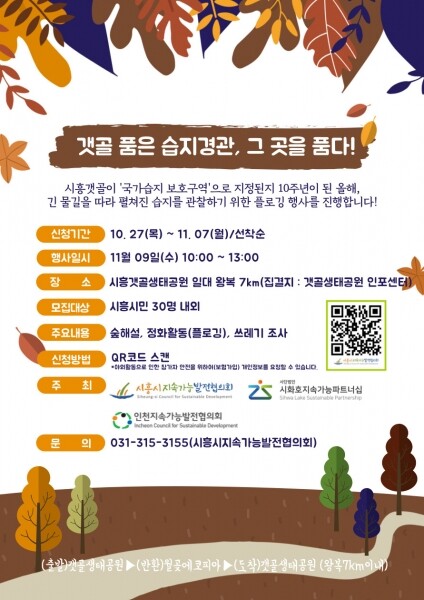 이번 행사는 ‘시흥갯골’이 2012년 국가 습지 보호 구역으로 지정된 지 10주년을 맞으며 시흥시민 30여명, 인천시민 30여명과 함께 갯골에 서식하는 칠면초와 나문재, 퉁퉁 마디 등의 염생 식물과 붉은발 농게, 방게 등 각종 어류, 양서류의 생태 관찰과 정화활동을 함께할 계획이라고 전했다.