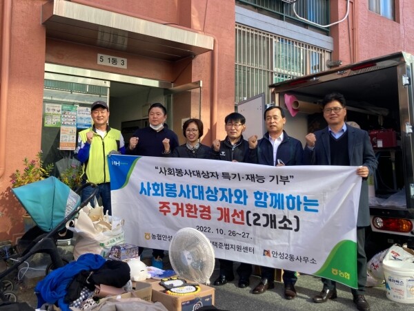 채정숙 안성2동장은 “사회공헌사업을 통해 안성시 관내 취약계층에게 매년 주거환경개선을 지원하고 있는 농협안성시지부와 힘든 집수리 작업에 이틀 동안 애써주신 시지부 직원분들과 사회봉사대에 감사드린다”며 “앞으로도 민·관이 함께 협력하는 지역복지를 통해 살기 좋은 안성시를 만들어가길 희망한다”고 전했다.