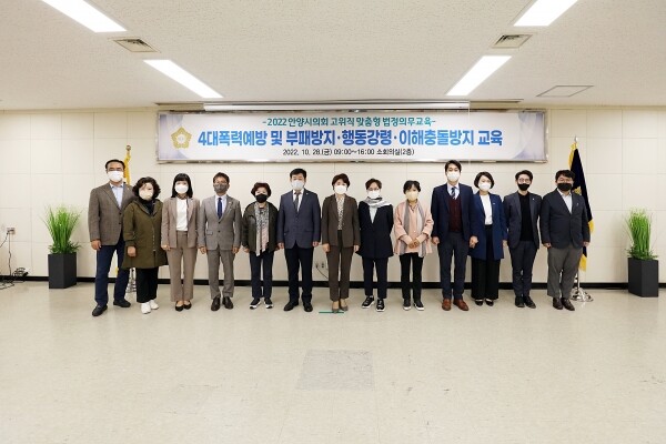 이번 교육은 제9대 안양시의회가 출범한 후, 첫 법정의무교육으로 공직자로서 가져야할 청렴의식 함양과 4대폭력에 대한 예방 의식 고취를 위해 개최됐으며 의원들의 적극적인 관심과 높은 참여율로 내실있게 진행됐다.