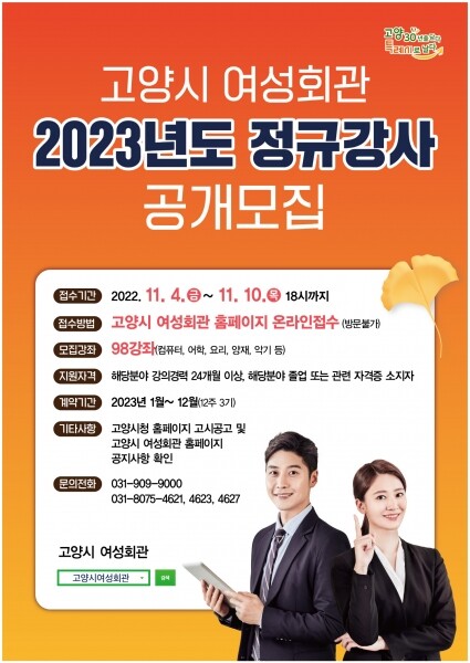고양시 여성회관은 효율적 교육 운영관리를 위해 강사 지원분야 단위를 그룹화 했다.