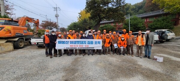 총기사용 안전수칙 등에 대한 안전교육 실시 후 실시된 이번 포획활동에는 안성시 유해야생동물 피해방지단 22명, 환경과 직원 15명, GPS가 부착된 사냥개 6마리가 동원됐으며 야생멧돼지 7마리를 포획했다.