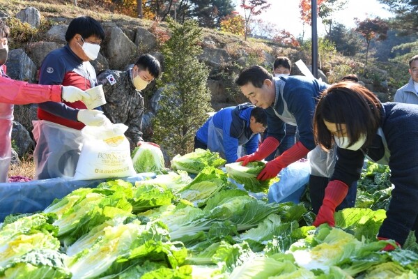 각 읍면동 협의체 위원, 군인 등 민·관·군이 함께 관내 어려운 이웃 1,500가구에 전달할 김장김치를 준비했다.
