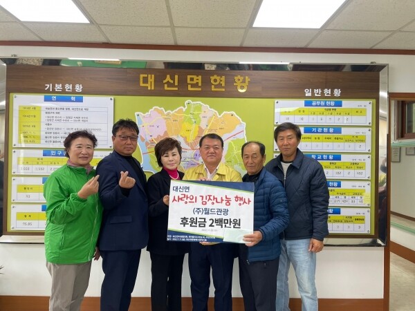 박충선 대신면장은 “추워지는 날씨에도 따뜻한 이웃의 정을 느낄 수 있도록 김장행사에 기부해 주신 여러분들께 진심으로 감사드린다며 앞으로도 소외된 취약계층에게 지속적인 성원과 관심을 부탁드린다”고 전했다.