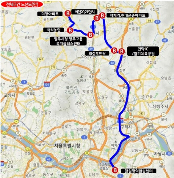 이번에 신설되는 광역버스 노선은 양주 광적면을 기점으로 백석읍, 회천지구, 의정부 민락지구 등을 거쳐 서울 잠실역이 종점이며 오는 2023년 상반기 운행을 시작할 예정이다.