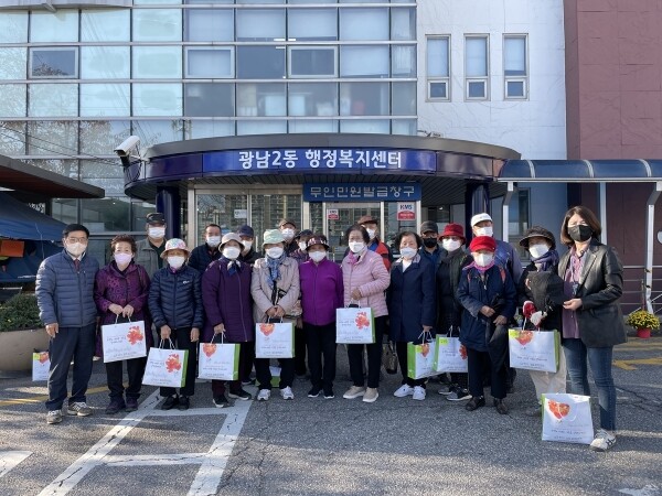 이번 방한용품 배부는 급격히 추워진 날씨로 인한 혹서기를 대비하기 위한 것으로 광남2동 노인 일자리 참여자 어르신 20명에게 전달했다.