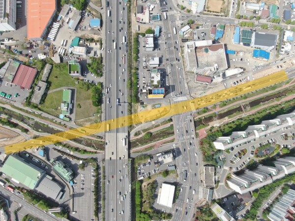 위에서 보면 경부고속도로를 횡단하는 모양이다.