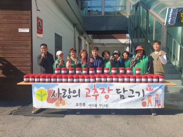 포천동 새마을부녀회는 지역 내 어려운 이웃의 따뜻한 겨울나기를 바라는 마음을 담아 고추장을 만들어 지역 내 홀몸 어르신 및 취약계층 80가구에 전달했다.