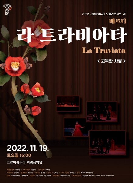 이번 ‘라 트라비아타’는 “고독한 사랑”이라는 부제를 가지고 오페라 전문 스토리텔러 신민이의 해설로 진행되며 비올레타 역에 소프라노 김신혜, 알프레도 역에 테너 김기선, 제르몽 역에 바리톤 송기창, 안니나 역에 소프라노 김효진, 그랑빌 역에 바리톤 우왕섭 등 국내 정상급 성악가가 출연한다.