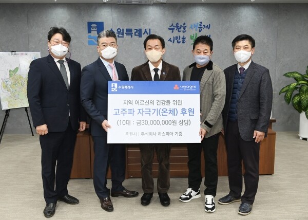 수원시 관계자는 “㈜하스피아가 후원한 고주파 자극기를 노인복지관 등을 이용하는 어르신들의 면역력 강화를 위해 사용할 예정”이라며 “수원시 어르신들을 위해 따뜻한 나눔을 실천해주신 ㈜하스피아에 감사드린다”고 말했다.