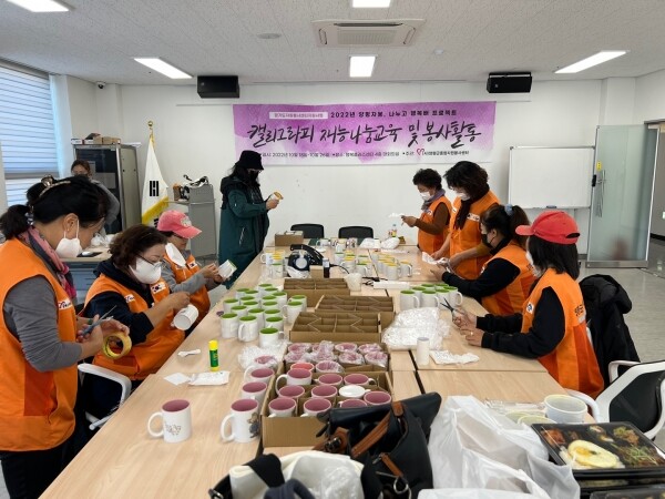 봉사단에서는 올 한 해 동안 진행된 캘리그라피 교육내용을 활용해 자연을 소재로 한 그림과 글씨를 삽입한 머그컵을 제작했으며 지난 2일 양평가족센터 노인맞춤형 사업 독거어르신들에게 150여 개의 캘리그라피 머그컵을 전달했다.