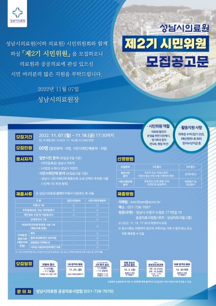 채윤태 공공보건의료사업실장은 “성남시의료원은 우리나라 최초 시민 발의로 건립된 의료원인 만큼 많은 사람들이 의료원 운영에 관심을 가지고 공공의료를 실천할 수 있도록 많은 관심과 적극적인 참여를 바란다”고 말했다.