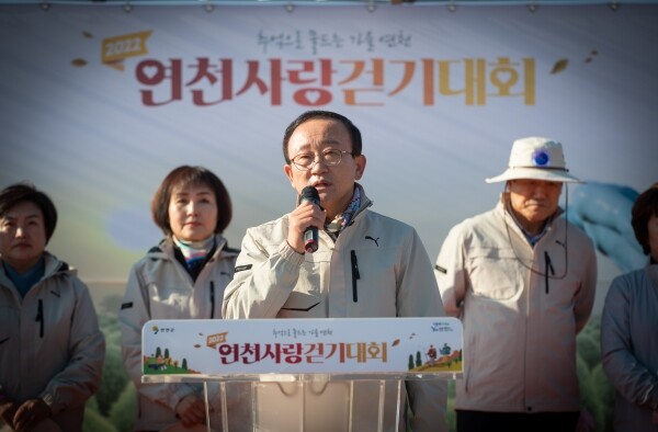 이날 김덕현 연천군수와 심상금 군의회 의장 및 군의회 의원들은 공원에서 연강나룻길을 지나 군남 두루미 파크까지 7.2km 코스를 참가자들과 함께 걸으며 아름답게 수놓은 연천의 자연환경을 만끽했다.