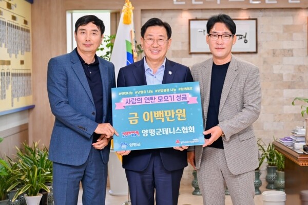 전진선 군수는 “사랑의 연탄 모으기 운동에 동참해주신 양평군테니스협회 회장님을 비롯한 관내 클럽 회원들께 감사드린다”며 “기탁된 성금은 난방유 지원, 연탄지원, 난방용품 지원등 취약계층이 따뜻하게 겨울을 보낼 수 있도록 사용하겠으며 많은 분들이 ‘사랑의 연탄모으기 운동’에 적극 동참해주길 바란다”고 전했다.
