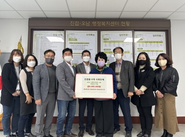 이번 후원금은 진접읍 주민자치위원회, 이장협의회, 새마을지도자협의회, 새마을부녀회, 체육회, 걷기연맹, 바르게살기위원회, 방위협의회 등 8개 사회단체가 십시일반 정성을 모아 마련했으며 지역 내 취약계층의 겨울 준비를 돕기 위한 ‘2022 사랑의 김장 나눔’ 활동 지원금으로 쓰일 예정이다.