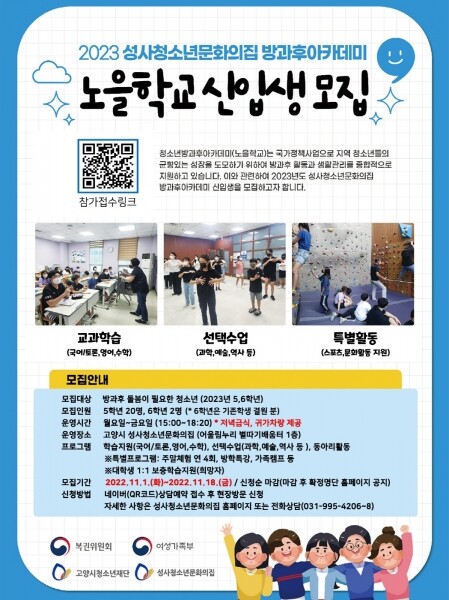 성사청소년문화의집 청소년방과후아카데미는 어울림누리 1층에 위치하고 있으며 여성가족부와 고양시에서 청소년의 전인적 성장과 가정의 사교육비 경감을 위해 2006년부터 운영하는 국가정책지원사업으로 고양시 초등학생 5~6학년이 대상이며 비용은 무료이다.