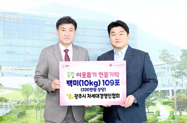 이번 기탁은 광주시 차세대경영인협회 3·4대 회장 이·취임식을 축하하는 마음을 화환 대신 백미로 전달받아 이뤄져 그 의미를 더했다.