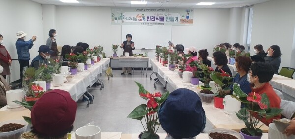 또한 전문적이고 세심한 교육 진행을 위해 도시농업관리사를 강사로 초빙해 진행됐으며 식물과 교감을 나누며 힐링하는 과정을 통해 코로나19 등으로 위축된 일상생활의 변모를 가져오는 취지의 교육과정으로 구성됐다.