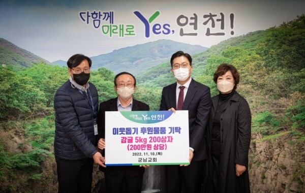 김덕현 연천군수는 “이웃사랑을 실천해주고 계신 군남교회 이재은 목사님을 비롯한 신도님들에게 깊은 감사를 드리며 후원해 주시는 분들이 있어 우리 사회가 더욱 밝고 따뜻한 분위기로 더불어 살기 좋은 지역을 만드는데 큰 원동력이 될 것으로 기대한다”고 말했다.