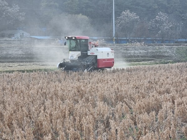 군은 농촌 고령화로 인한 인력 부족 문제를 해결하고 농가의 영농부담을 덜어주기 위해 콩콤바인 7대를 투입, 11월 말까지 관내 12개 읍·면 101개 농가 128ha 규모의 농지를 대상으로 콩 수확작업 지원에 나섰다.