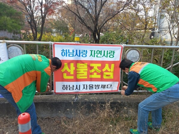방재단원 90여명이 참여한 가운데 검단산 등산로 이성산성 등 등산객이 많이 방문하는 주요 지점을 대상으로 인화물질 소지 입산 금지, 산불 발생 시 행동요령 등을 적극 홍보하며 산불에 대한 경각심 고취를 위한 홍보 활동에 나섰다.