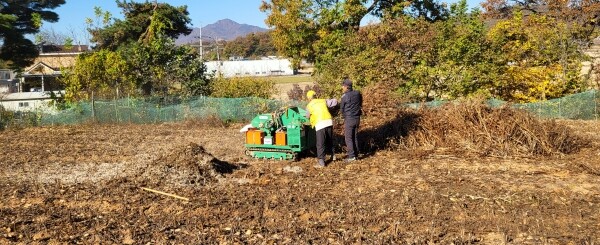 신청자가 끈이나 철사 등 이물질 없이 잔가지를 잘 모아두면 직접 농지로 방문해 파쇄기로 처리하는 방식이다.