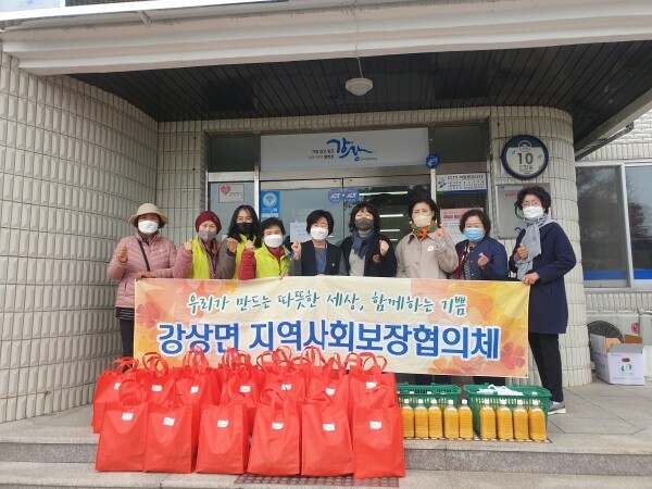 한편 강상면 지역사회보장협의체는 관내 저소득 홀몸어르신, 위기가구 등 과 1대1 결연을 맺고 수시로 이웃돕기 물품 및 밑반찬 등을 지원하며 복지 위기가구를 돕기 위해 다양한 노력을 하고 있다.