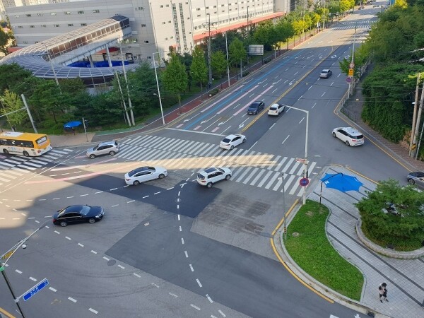 구는 우회전 차로를 2개로 추가하는 한편 우회전 시 급격한 회전 반경을 완화하기 위해 정지선 위치를 후방으로 옮겼다.