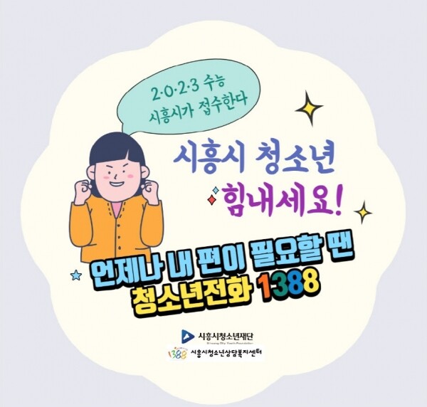 이주원 청소년상담복지센터 소장은 “수험기간 코로나19로 인해 더욱 긴장했을 수험생들에게 수고했다는 말과 응원을 전한다”며 “언제든 내 편이 필요할 때는 1388 또는 센터로 연락해 달라”고 밝혔다.