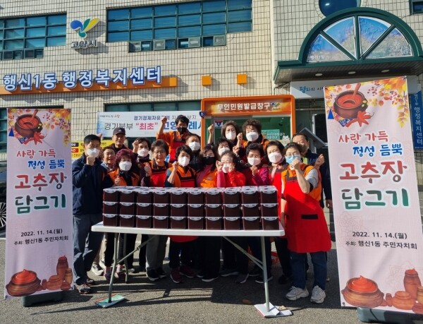 이번 행사는 전종학 행신1동장도 함께 자리해 구슬땀을 흘리며 고추장을 담가 행신1동 관내 한부모 가구, 독거노인 등 취약 계층 70여 세대에 전달했다.