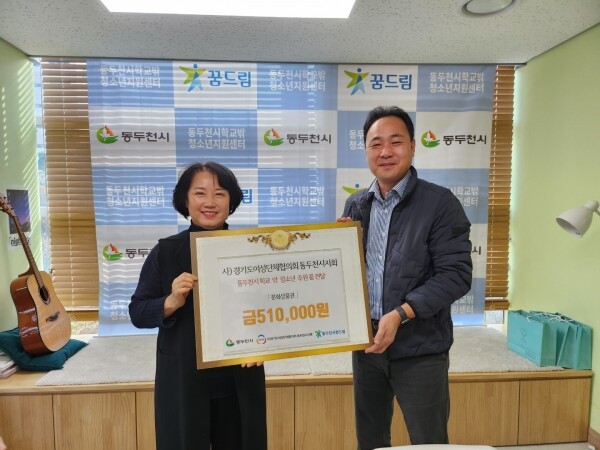 이에 동두천시 학교밖청소년지원센터장은 “학교 밖 청소년들을 위해 아낌없는 지원을 주시는 여성단체 회장님과 회원분들께 감사하며 앞으로 관내 청소년뿐만 아니라 다문화, 난민 청소년들도 포함해 모두 건강하고 밝게 성장할 수 있도록 더욱 노력하겠다”고 감사의 뜻을 전했다.