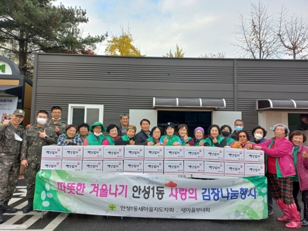 특히 이날 김장나눔 봉사는 안성1동 직원, 각 마을 통장, 안성1동 동대장을 비롯한 군인 등 40여명이 일손을 보태 소외계층의 따뜻한 겨울나기를 응원하는 이번 행사의 취지를 더욱 돋보이게 했다.