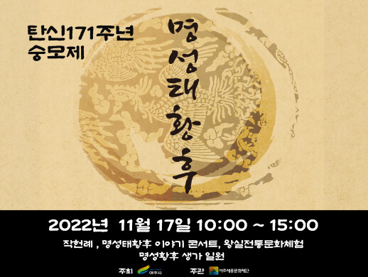 명성태황후 탄신 171주년 숭모제 행사 참가신청은 여주세종문화재단 홈페이지 온라인 접수 또는 전화 접수하면 된다.