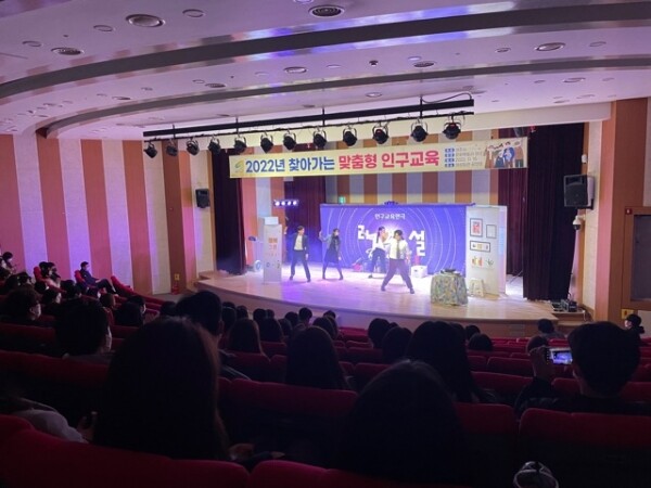 이번 교육은 일·생활 균형, 가족의 가치, 양성평등 관점의 교육을 통해 결혼·출산·양육에 대한 긍정적 가치관 형성과 인구문제 인식개선을 위해 보건복지부와 인구보건복지협의회에서 개발한 인구교육용 목적극 뮤지컬으로 진행된다.
