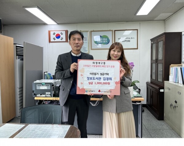 김경희 주무관은 2020년 신곡2동, 2021년 의정부2동에 성금을 기탁하는 등 3년 연속 100일간 사랑릴레이에 참여하고 있다.