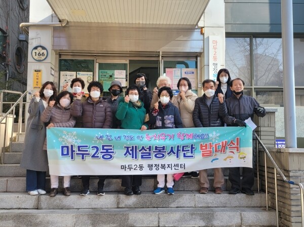 제설봉사단은 마두2동 직능단체 53명으로 구성됐으며 겨우내 적극적인 제설 작업을 통해 주민들의 관내 안전통행을 마련해 지속적인 이웃사랑을 실천할 예정이다.